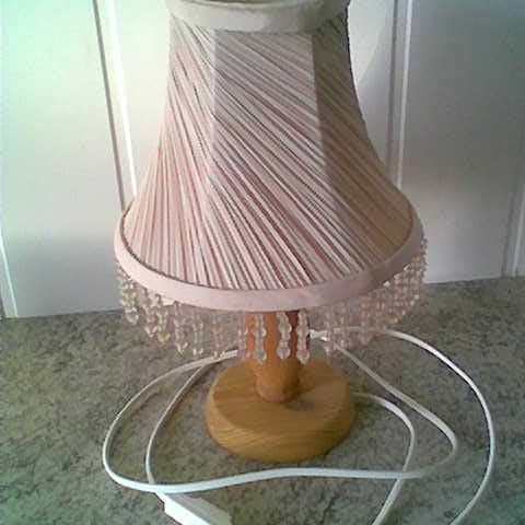 Sølvfarget bord lampe. Høyde 45 cm med skjerm. Må hentes