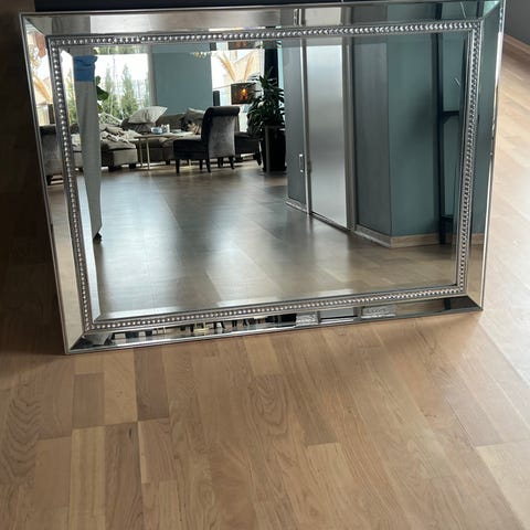 Pent IKEA SOGNE speil selges til førstemann. 2 små skader på to hjørner (se bilder) , men ellers veldig fint. 91cm bredde og 130 i lengde.