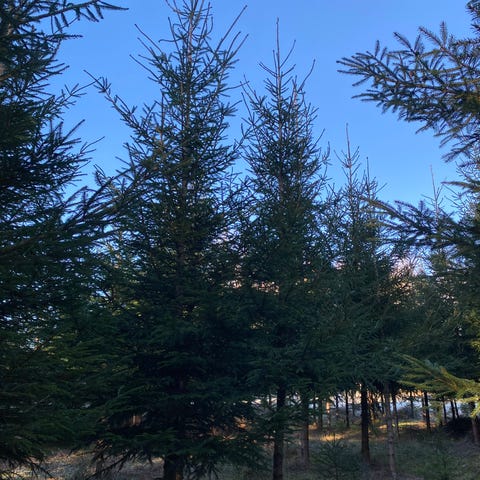 Je har en liten "skog" med store juletrær. Trøndergran, de er ca 5-8 meter høye.