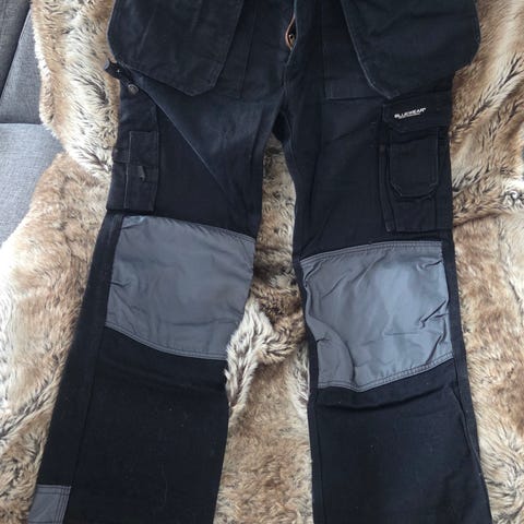 Mørk blå arbeidsbukse str. 50 / medium. Fabric by Klopman. Mulighet for å legge inn beskyttelse for knær.
