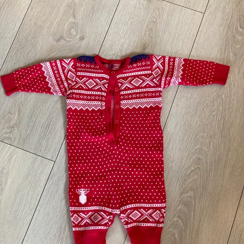 Pent brukt heldress med mariusmønster i str 6-12 mnd selges. Røyk og dyrefritt hjem. Kan sendes om kjøper betaler porto.