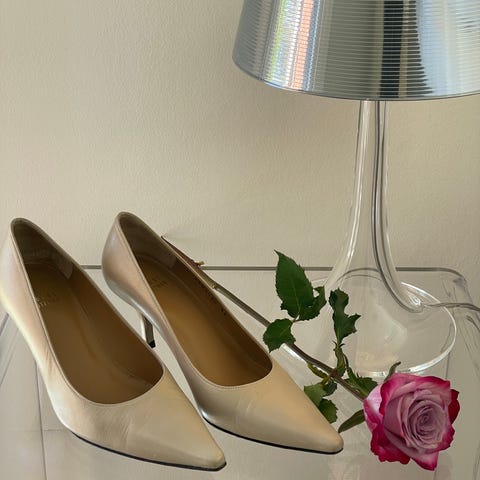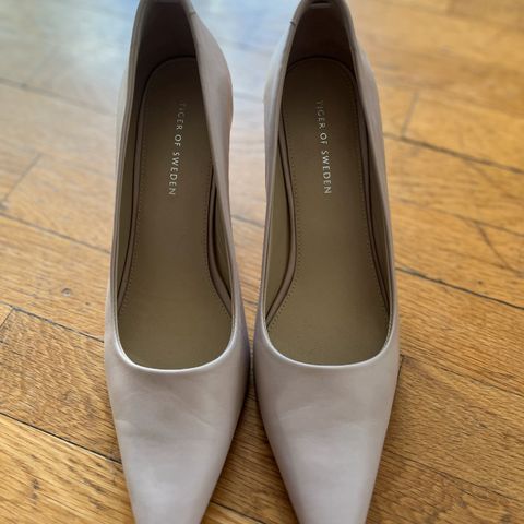 Stilig klassisk pumps i kalveskinn fra Tiger of Sweden. Nydelig beige farge . 100% skinn. Ble brukt en gang i en sommer bryllup . Ord pris 2299
