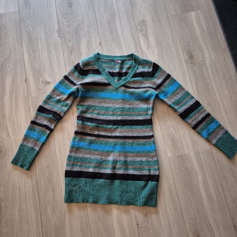 70% ULL. 20% ANGORA. MEXX. Grønn - Grå stripete lang genser.