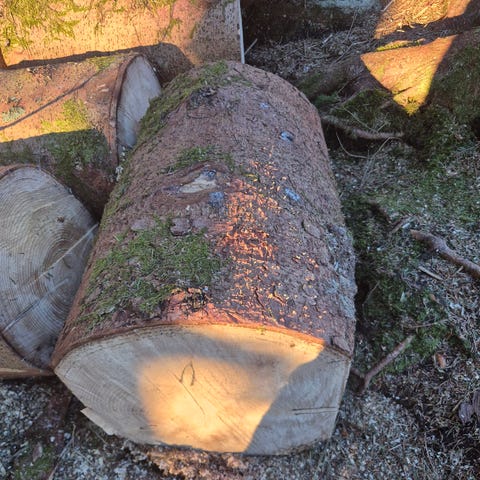 Veden er kappet i lengde på 30 cm og er lagret og tørket i notsekk på 1500 liter.