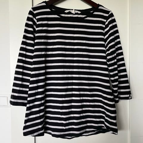 Stripet i blått og hvitt.