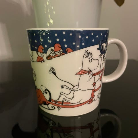 Original Mummikopp Julehilsen produsert i perioden 1997–2002. Koppen har ødelagt hank (se bilder), og selges derfor som defekt/til pynt eller samlerobjekt. Ingen andre kjente skader.