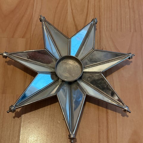 Lysholdere jul. Speilunderlag for lys mm. 2 stk Stjernefasong. Selges 60kr.