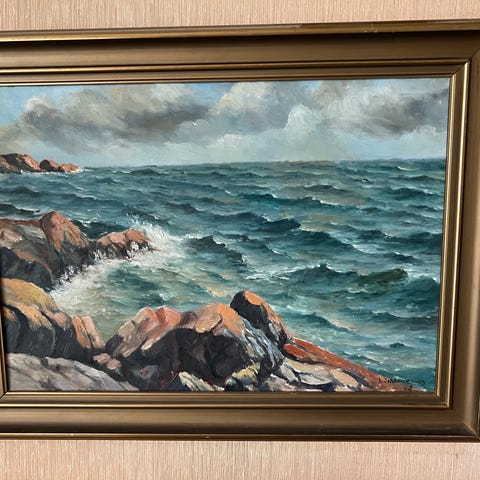 vurd. solgt. Olje på lerret. Mål: H: 41 cm. + B: 54 cm.