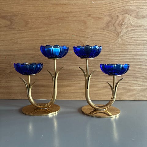 Design av Gunnar Ander, messing, 14 cm høy. Retro i god stand. Dette svenske design er brukt i filmer og selges for 1630 kr i Sverige!