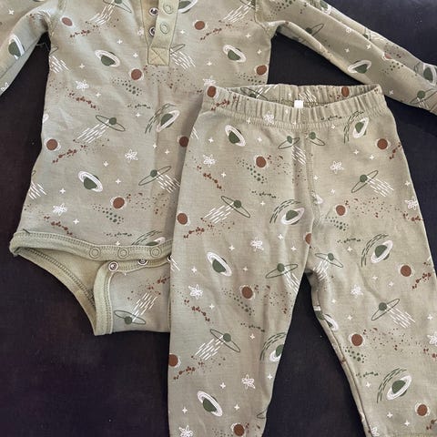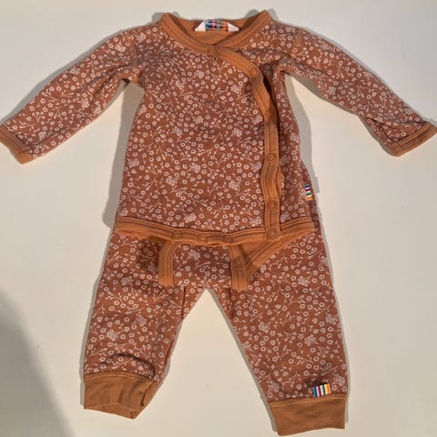 Helt nytt med lapp på. str 60 i body og 70 i bukse. passer sammen slik at det ikke blir trangt rundt magen. Settet er i myk bambuskvalitet. i mørke blå