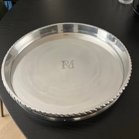 Pent brukt fat fra Riviera Maison. Sølvfarget.