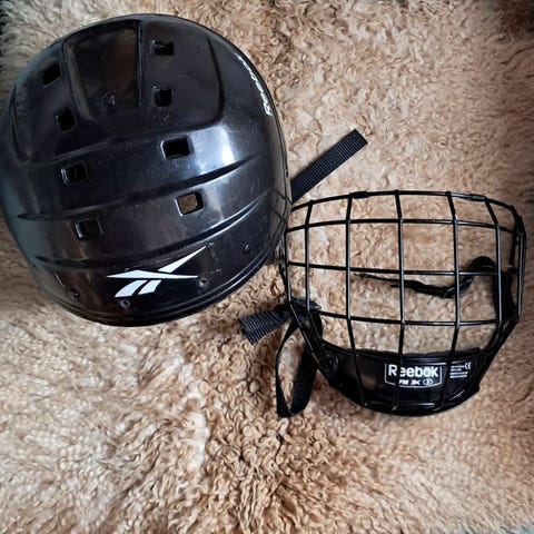 Pent brukt REEBOK 1K hockeyhjelm/ multisportshjelm, str. 50-57 cm (S) selges. Farge: rød. Certified EN10256.