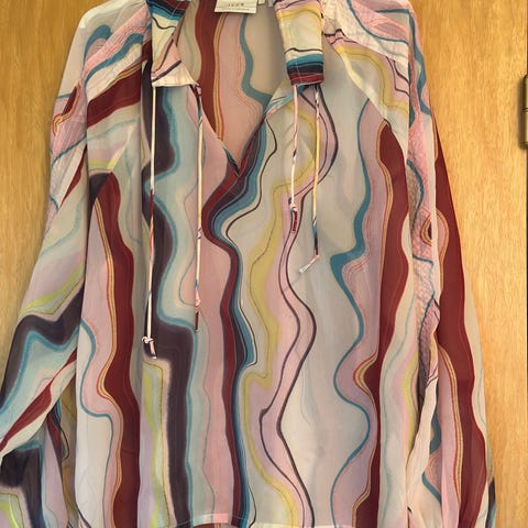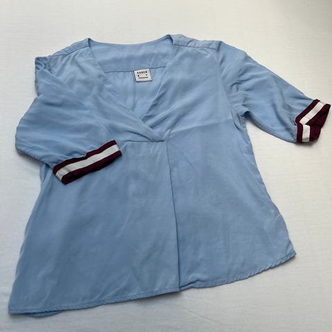 Nydelig lyseblå bluse fra Karen by Simonsen str 36. Vid modell. Brukt en gang og fremstår som ny. Selges kr 250 pluss frakt.