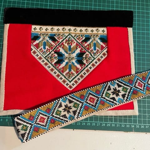 Perle brystduk / bringe duk og fangbånd / belte til Hardanger bunad