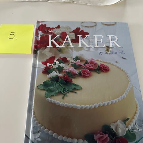 Kaker, pynt dem selv av Heidi Bøe, utgitt på Cappelens Forlag i 2006. Boka er som ny og selges for kr 50,-