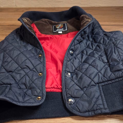 Søt vendbar vest i fuskepels str 24 mnd fra Jacadi. Grå m hvite prikker på innsiden.