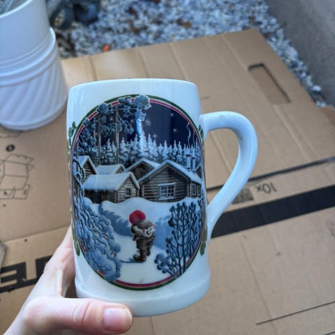 Stor julemugge fra Axsel Eliasson ,sendes med posten 129kr porto.Tar 1.2 liter og er ikke brukt
