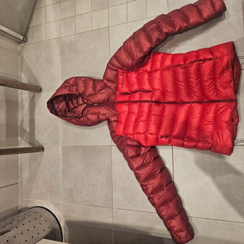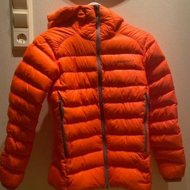 Utrolig god og varm dunjakke i en veldig fin turkisfarge. Kun prøvd på, men ble for stor for meg