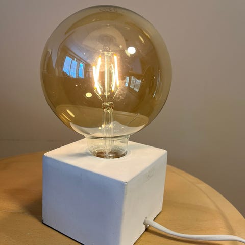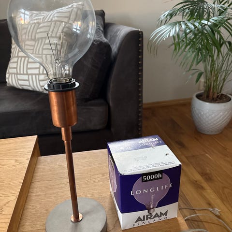 Bordlampe med kjempefin lyspære selges for 250 kr,kan sende ,kjøper dekker frakt.