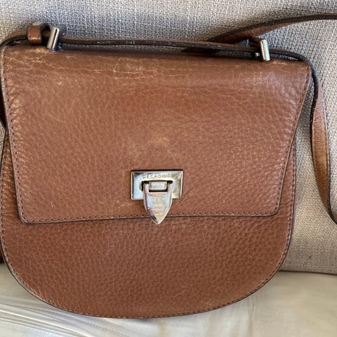 Muberry Mabel i nydelig taupe farge, som passer til alt, svært god stand, trykk knapp over vesken er skiftet ut med spenne gjort hos Luna, skinnreperatør i Oslo, selges kr 2000,- pluss frakt.