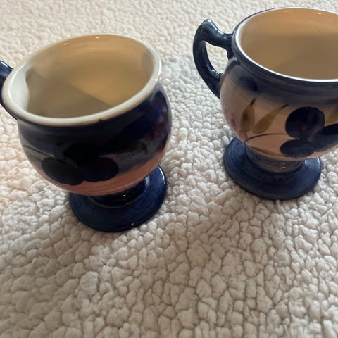 Beger 12cm høy dia 8cm kr.300 og skål 7cm høy 9,5cm dia.kr.400(skål solgt) Begge signert.. Frakt evnt i tillegg.