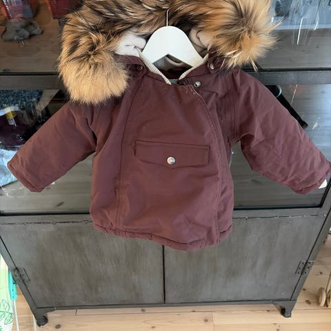 Varm og god jakke fra mini a ture med ekte pels. Nydelig jakke. Står 74 i størrelse men stor i størrelsen og jeg vil si den er 80. Den er brukt 2 ganger i vogn da det ble feil med størrelsen ift. Årstid. Ingen bemerkninger.