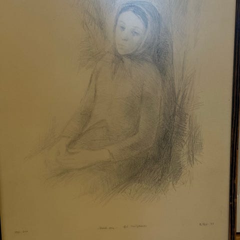 Tegning av Erik Werenskjold til salgs. Størrelse inkl. ramme og passepartour er 56cm x 74cm.