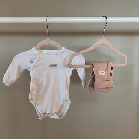 Body i bomull fra Claire.dk. Hvit med lys rosa striper.