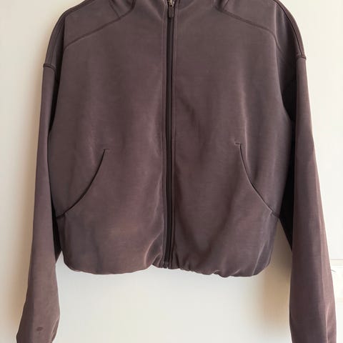 Lite brukt, cropped, gammelrosa/sort college jakke med puffermer.