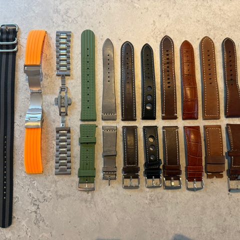 Jeg har de fleste merker liggende og kjente merker som blant annet Morellato. Men har merket som Audemars Piguet, Patek Phillip, Omega, Cartier, movado, longines, Tissot, certina, morellato, rubber B, Barton, Hirsch, Olma, Rado, Enicar, Oris, Vostok, Breitling, Zenith, Glashutte, Seiko for å nevne noen.