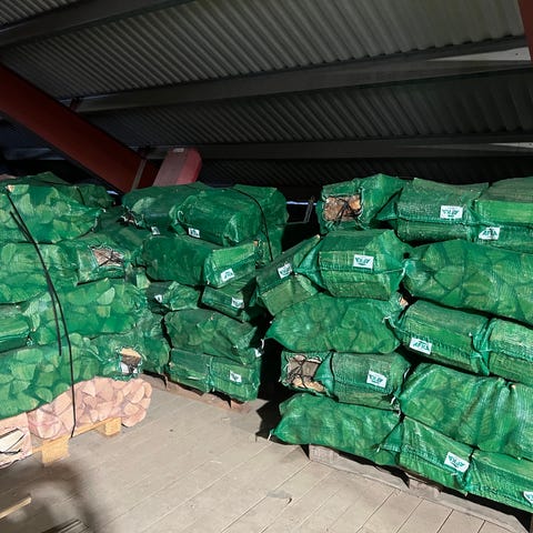 Tørr og fyringsklar blandingsved. Ca 30 cm lengde, pakket i håndterbare 60L sekker. Ca 13 sekker utgjør det samme som man får i en full løs 1000L sekk på pall.