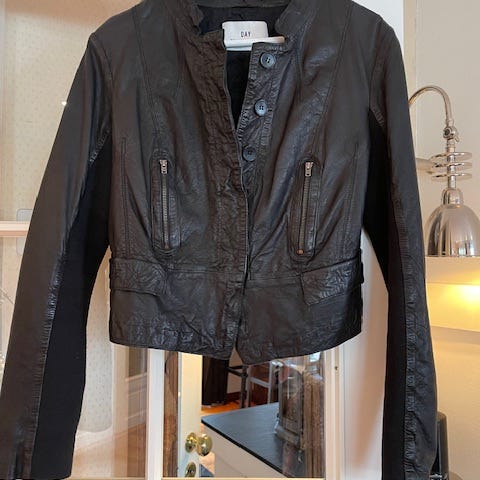 Fin kort skinnjakke fra vila str L kr 400