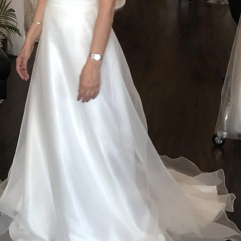 Kjolen har stropp, perle topp, chiffonskjørt og slep