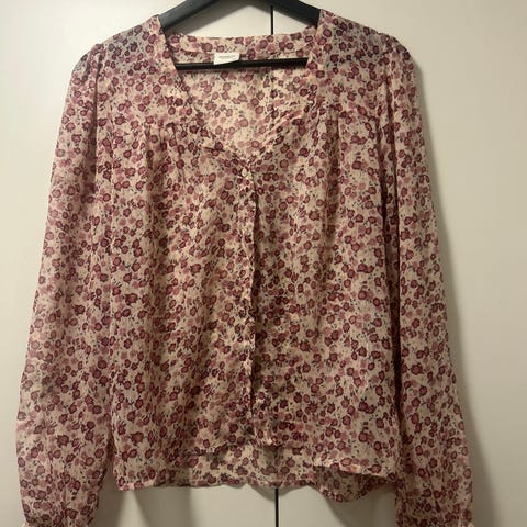 Fin rød topp med motiv av kirsebærblomstring.