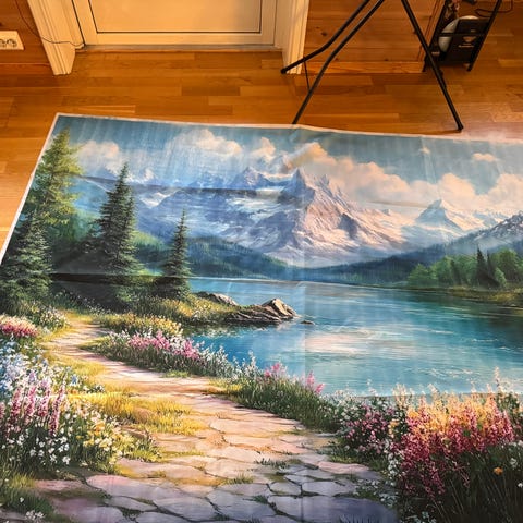Tekstilbilde av en mann og kvinne selges