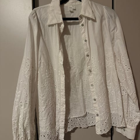 Nydelig bluse fra YAS. Hvit med knapper på ryggen. Står S, men synes den er litt liten på størrelsen. Knapt brukt, så fremstår som ny.