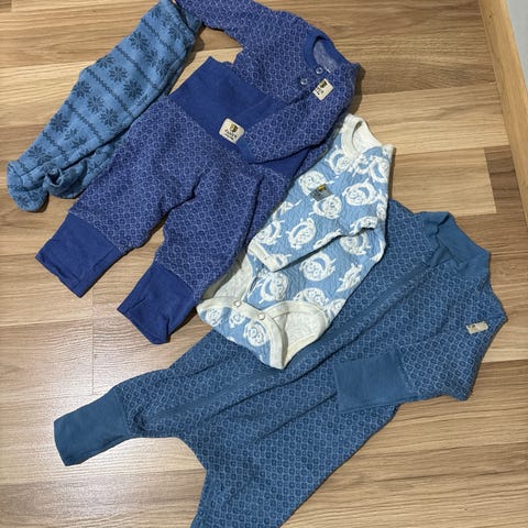Janus, Joha ull størrelse 60, brukt. 5 body og 2 bukser selges samlet. Den ene body har en liten slitasje skade,ikke hull. Se bilde.