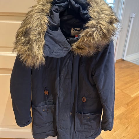 Selger en nydelig og varm parka med fin passform og pene detaljer. Selges på grunn av plassmangel. Avtagbar fake «pels» hette.