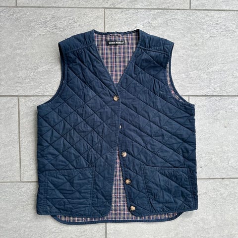 Lun og god lang vest, antikk hvit str M, kortere foran.