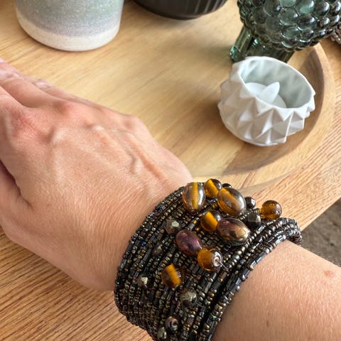 Armbånd med lær-reim og glitrende stener - ubrukt