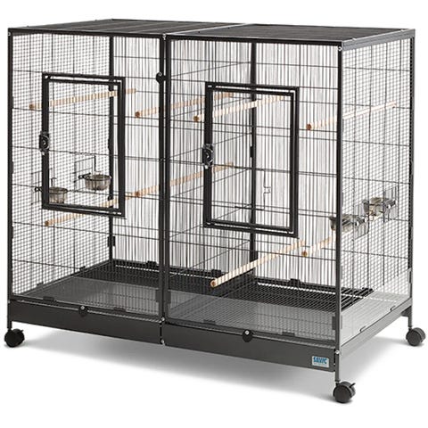 Louise 50 comes with wooden perches, water drinking fountain, bird bath and feeding bowls. The drawer of the tray is easy removable for easy cleaning. Modern look, due to wire and tray in bluestone in combination with a white drawer.