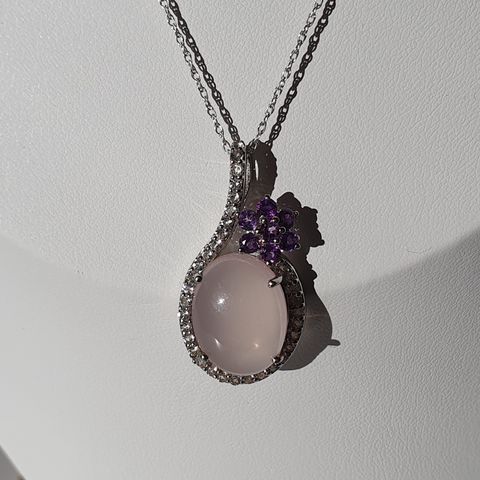 A magnificant Limited Edition Necklace from the Annabella Collection, set in 925 Silver & featuring a beautiful 4.5ct Rutile Quartz from Brazil with 12 dazzling White Topaz from India. Rutilated Quartz is highly valued for its beautiful rutile needles.. It is thought to enhance clarity, boost positive energy, bring luck and success, promote healing, and empower wearers during difficult times. In addition, Rutilated Quartz amplifies the properties of other gems including the healing powers of its base stone, clear Quartz.