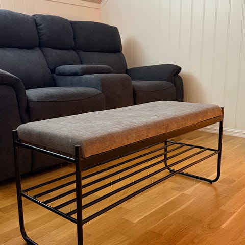 Utstillingsmodell solid Coco-Mat benk selges. Denne har kun stått i utstilling og er så god som ny. Selges rimelig da den har fått en liten skade på flate på den ene siden etter transport. Ben i eik med eikespiler på topp platen. Kan benyttes som en avlastningsbenk i gang / soverom. Kan benyttes som bord / TV skjenk om man ønsker. Ny pris. 16.300,-
