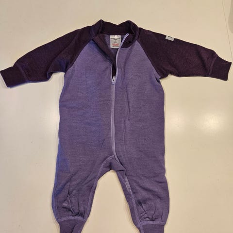Selger en pent brukt ulldress til beby som har mye bruk igjen. En liten hull på armekanten er sydd igjen pent (se bilde) og det er noen veldig få nupper å se. Andre bilde viser fargen bedre, den er grå-lilla og vi synes det passer for både gutt og jente. Ingen flekker, fra dyrefritt og røykfritt hjem.