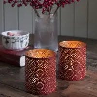 2 lykter, julerød. 1 stor, 1 litt mindre. Kun stått til utstilling. Selges samlet kr 300,-