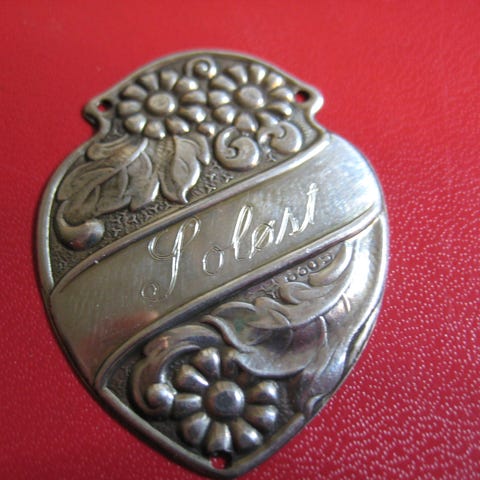 Gammelt frakkeskjold i sølv