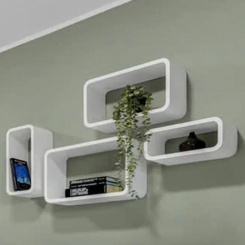 Dette settet med kubeformede vegghyller har et praktisk design, og er ment å være midtpunktet i stuen, soverommet, osv.