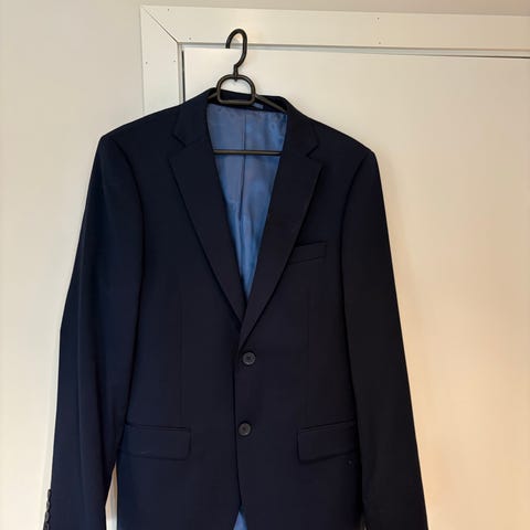 Super fin dress fra H&M. Farge blå. Str bukse 50 og jakke 52. Kun brukt i noen timer og lommene på jakka er ikke åpnet. Ønsker å selge hele dressen samlet til kr 1000,- Hvis du kun ønsker en av delene, kr600 pr del.