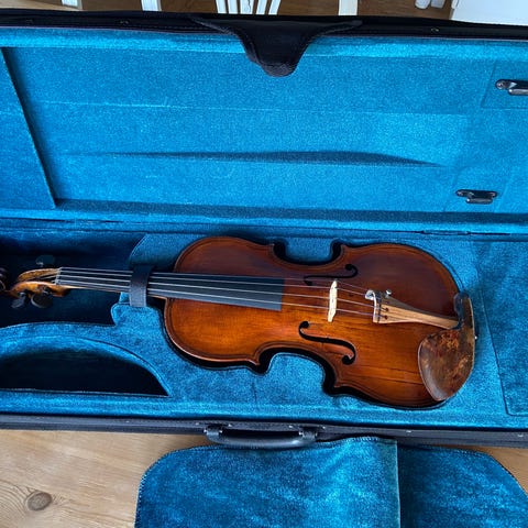 Den har kun noen små merker etter tidens tann. Lyden er varm og sterk med klar resonans. Fyldig i medium i de dype frekvenser, noe som lager den varme klangen.