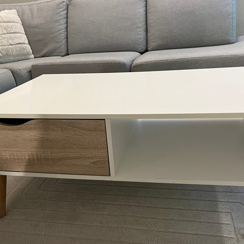 Dette stilige salongbordet med en skandinavisk sjarm er et praktisk tillegg til hjemmet ditt.